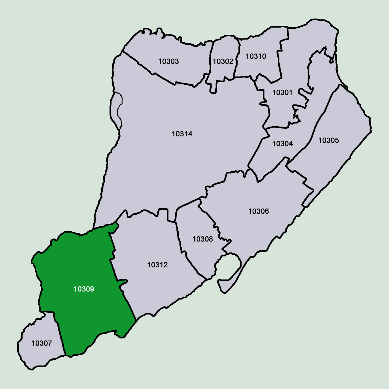 Covering Staten Island’s southwestern corner, 10309 stretches from the West Shore Expressway to Hylan Boulevard and south to Bloomingdale Park.